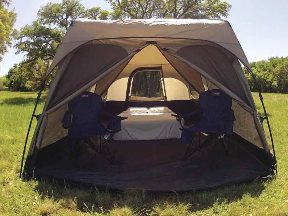 Tent rental with Queen air mattress, linens, cooler, chairs, and light