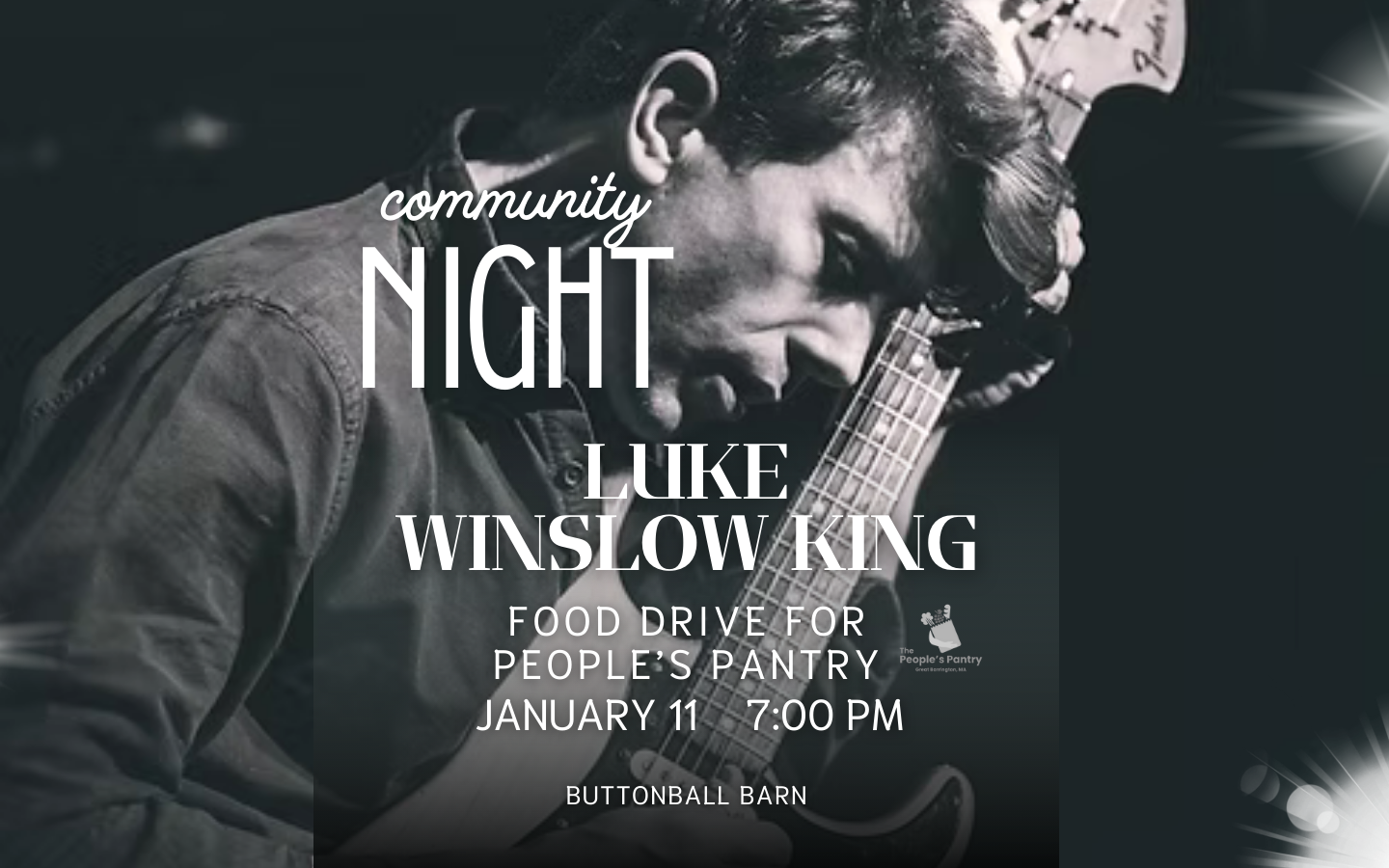 Join us at The Barn on Sunday, January 11, 2026 for an unforgettable night with Luke Winslow-King — and help fight food insecurity in our community.