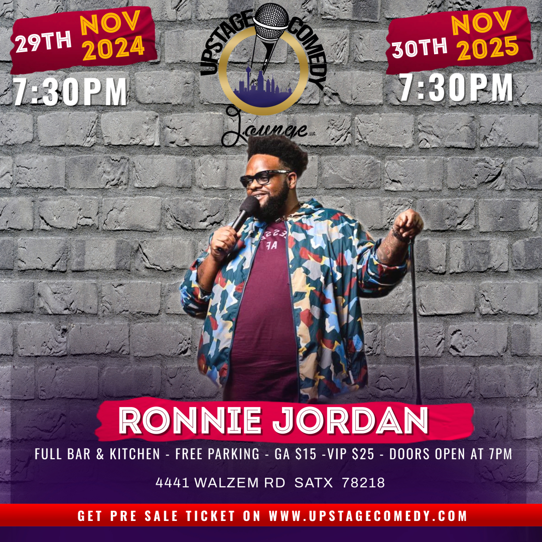 Join us at 4441 Walzem Rd, San Antonio, TX 78218 for an unforgettable evening filled with food, drinks, and outstanding comedy. Don't miss out on seeing Ronnie Jordan and a special guest light up the stage at Upstage Comedy Lounge!