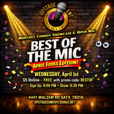 Entry starts at $15, and we offer free parking to make your experience hassle-free. For more information or to make reservations, call us at 210-562-0235. Be sure to secure your spot early for this popular event by visiting upstagecomedy.com.