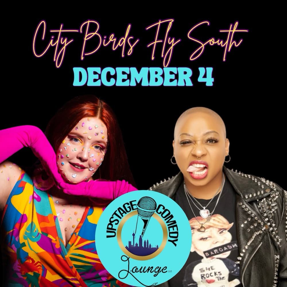 Get ready for a night of bold humor and unforgettable laughs as City Birds Fly South takes the stage at Upstage Comedy Lounge on December 4 at 7:00 PM. These two comedic powerhouses are bringing their unique styles and larger-than-life personalities to San Antonio for a show you won’t want to miss..Get ready for a night of bold humor and unforgettable laughs as City Birds Fly South takes the stage at Upstage Comedy Lounge on December 4 at 7:00 PM. These two comedic powerhouses are bringing their unique styles and larger-than-life personalities to San Antonio for a show you won’t want to miss. Whether you’re looking for a fun night out with friends, a unique date night, or just a chance to experience top-tier comedy, this show has it all. Don’t miss your chance to see these hilarious performers live—grab your tickets now and get ready for an evening full of laughter and unforgettable moments!