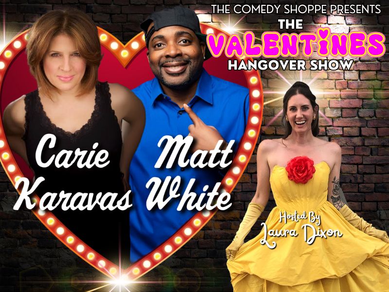 Get ready to laugh off those Valentine’s Day blues with the "Valentine’s Hangover Comedy Show"! Starring the hilarious Carie Karavas and Matt White, two comedians who are here to remind you that love isn’t always hearts and roses—sometimes, it’s awkward, funny, and a little bit of a disaster.
