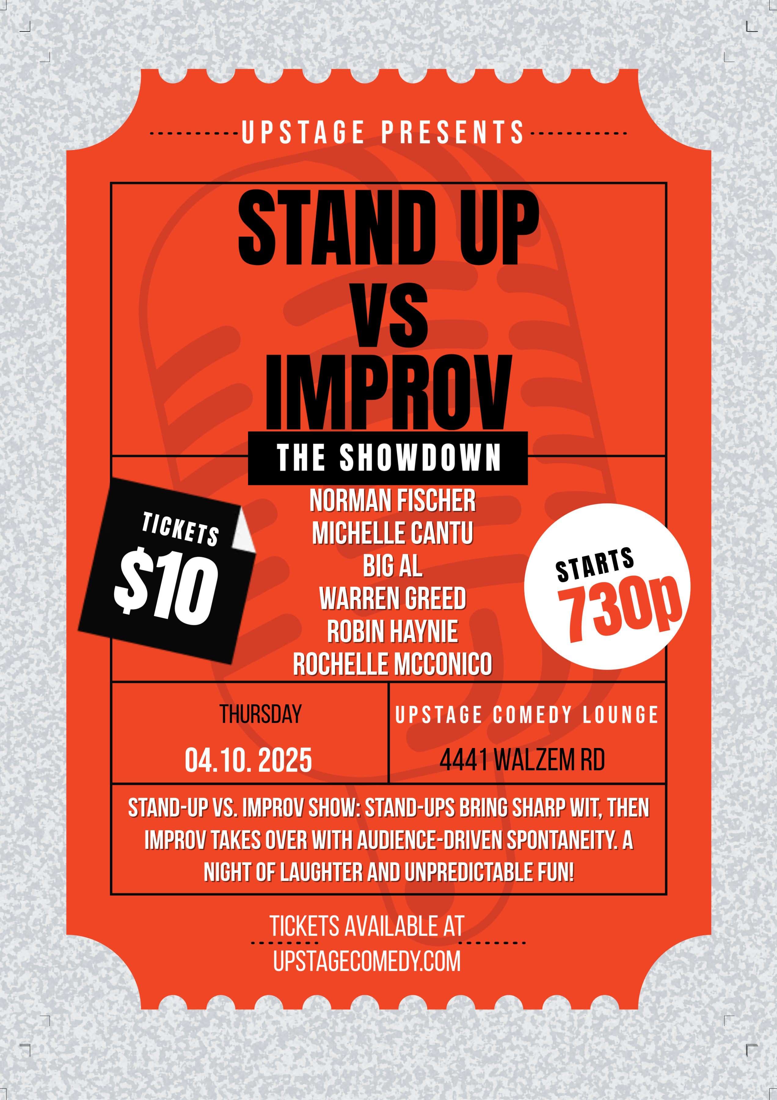 A night of laughs, competition, and unpredictable fun! Get your tickets now at UpstageComedy.com!