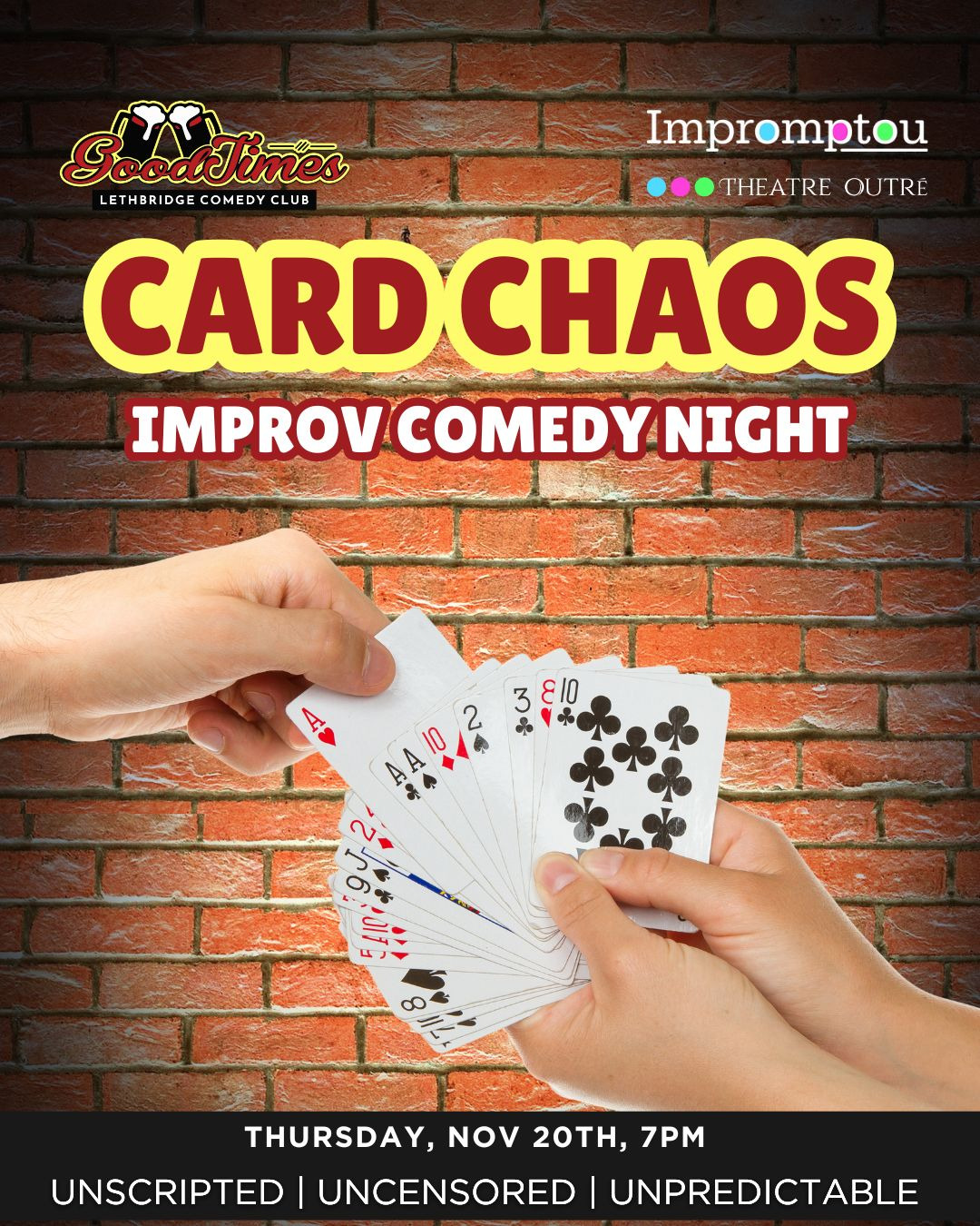 52 Cards. Six Performers. Card Chaos. A show that breaks all the rules and lets a deck of cards decide the fate! Join members of the ImpromptOu Players and their friends for the ultimate improvised party show as they face truths, dares and challenges that continually keep them on edge with no idea of what is coming next!