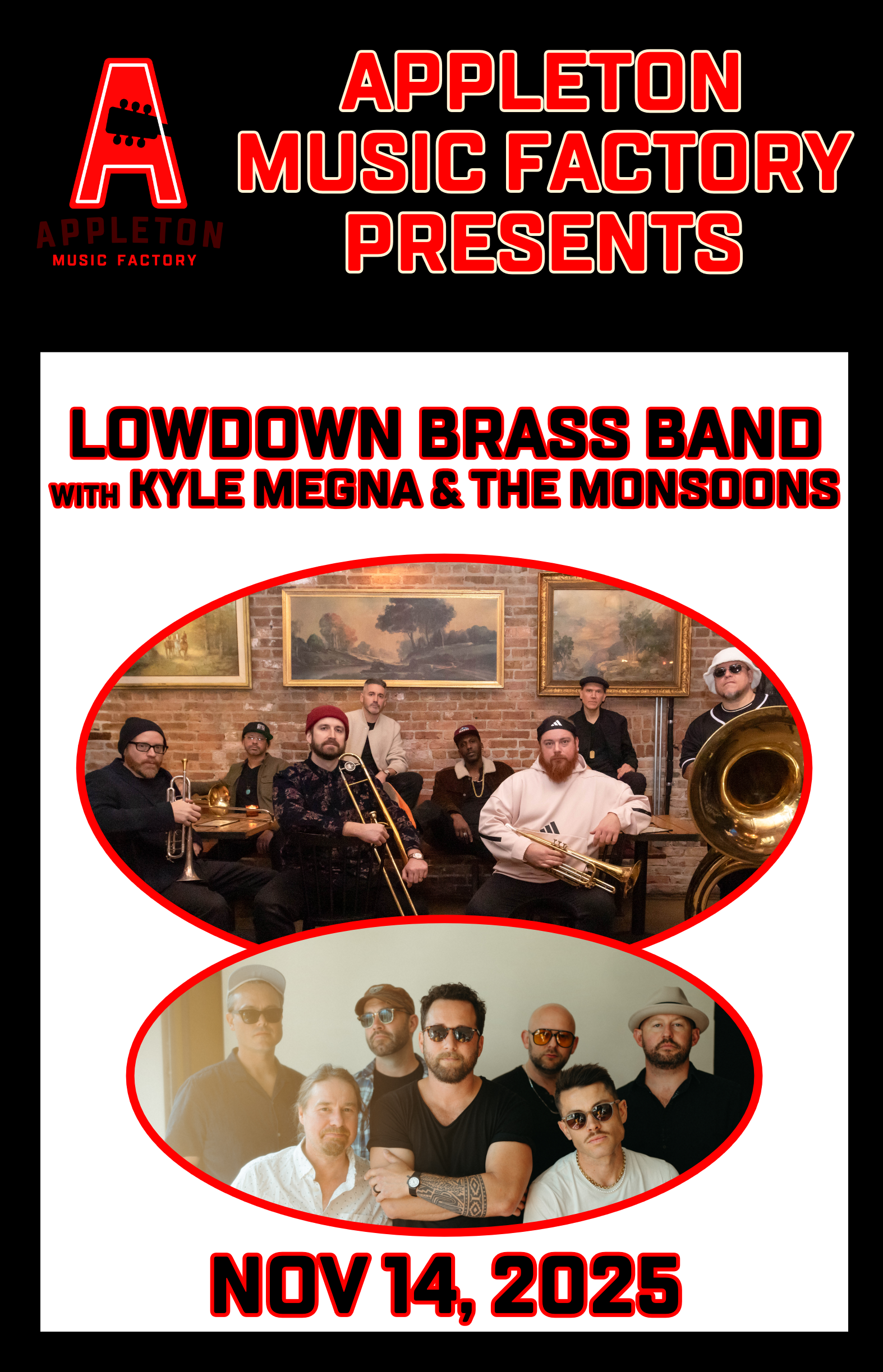 LowDown Brass Band and Kyle Megna & the Monsoons at Appleton Music Factory