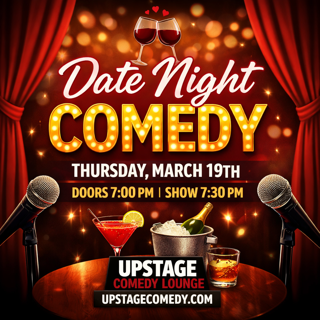 Treat yourself to a fun night out at Upstage Comedy Lounge with our Date Night Comedy Show on Thursday, March 19th. Enjoy a night of laughs, drinks, and good vibes in an intimate comedy club setting.
