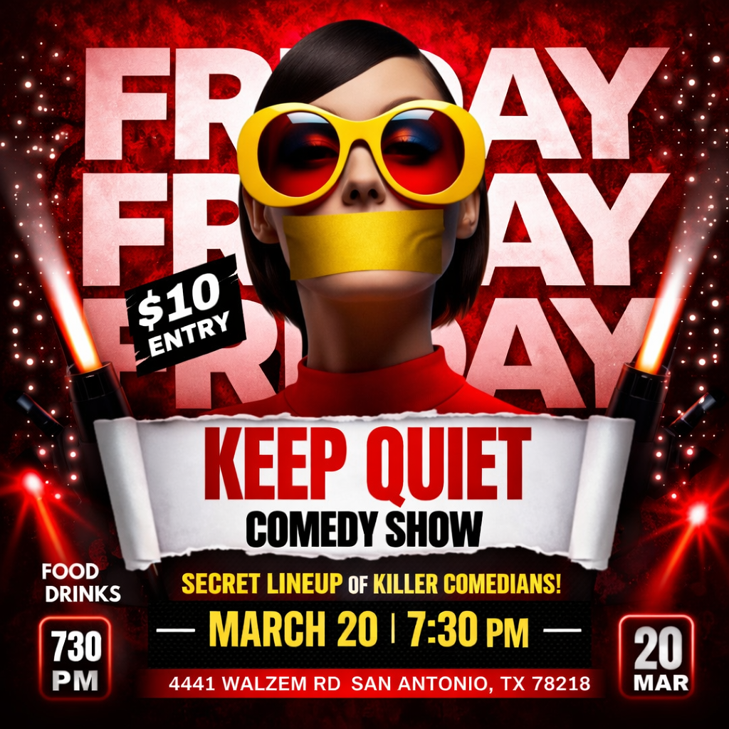 Get ready for a night of surprises at the Keep Quiet Comedy Show — featuring a secret lineup of killer comedians you won’t know until they hit the stage. 👀🎤