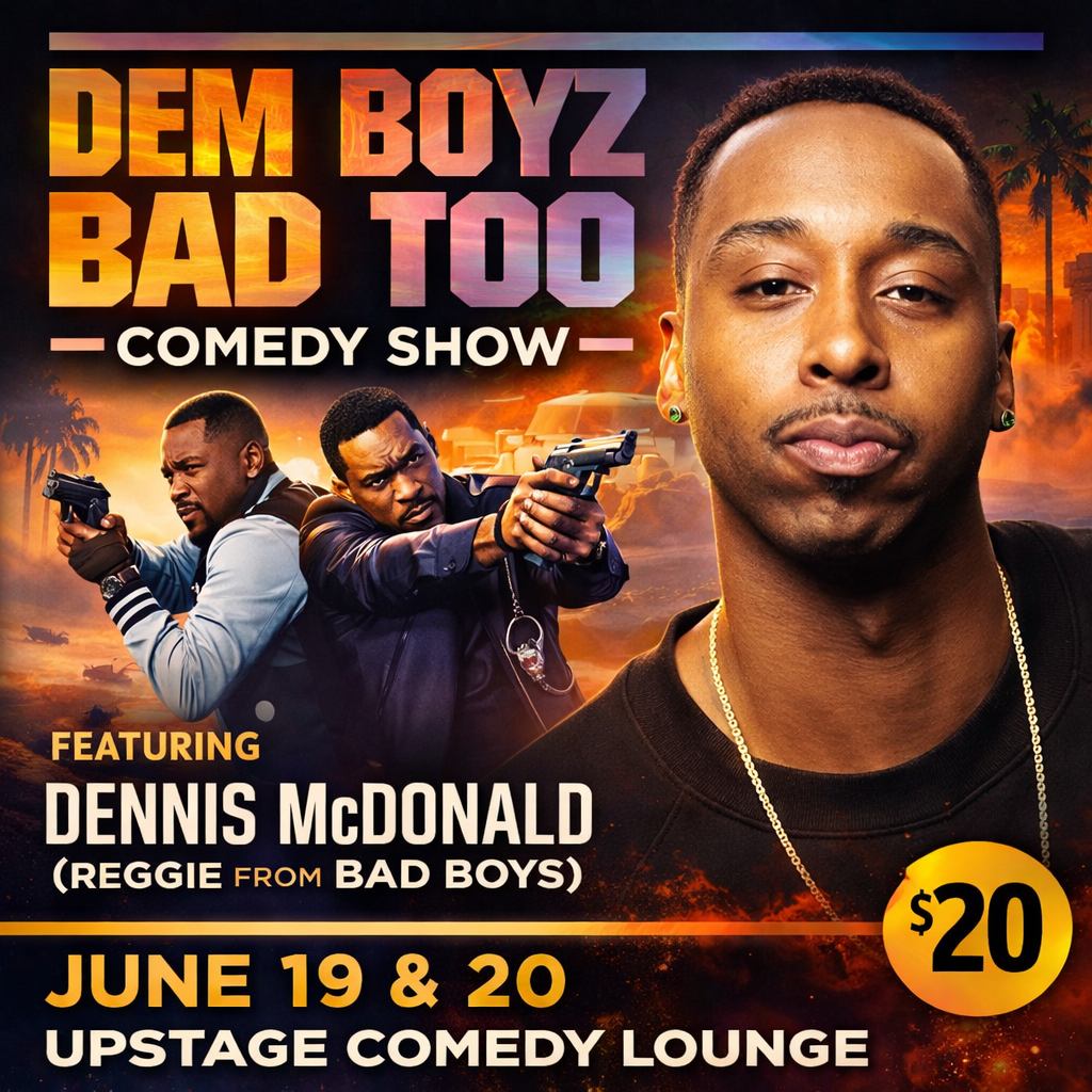 Get ready for a high-energy comedy experience inspired by the vibe of Bad Boys! The Dem Boyz Bad Too Comedy Show brings big laughs, big personality, and a night you don’t want to miss at Upstage Comedy Lounge.