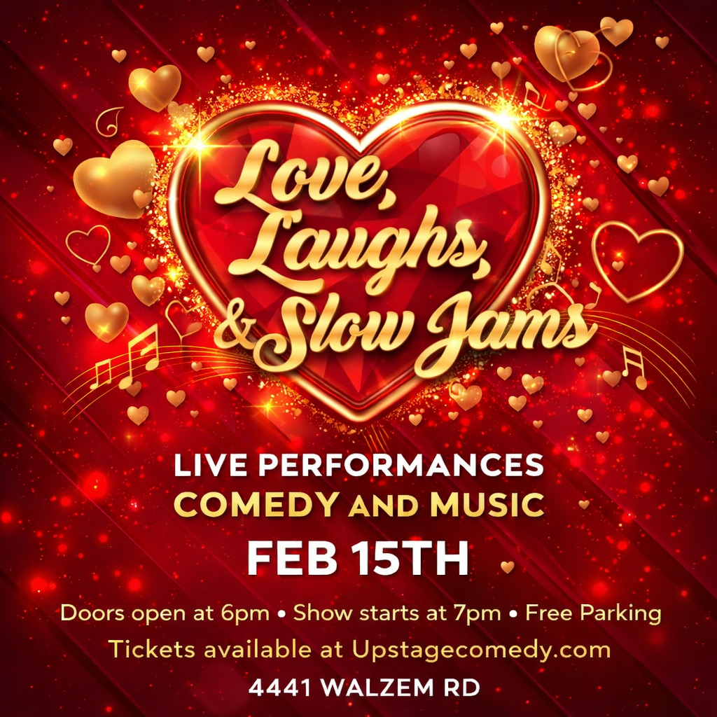 Make it a real date night. Love, Laughs, and Slow Jams brings together stand-up comedy and a live music finale for one smooth, feel-good evening at Upstage Comedy Lounge. Expect big laughs, grown vibes, and a soundtrack that keeps the night going.